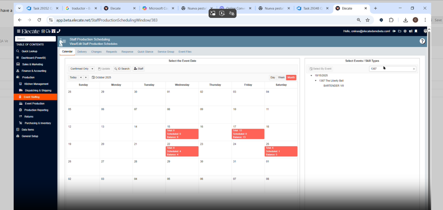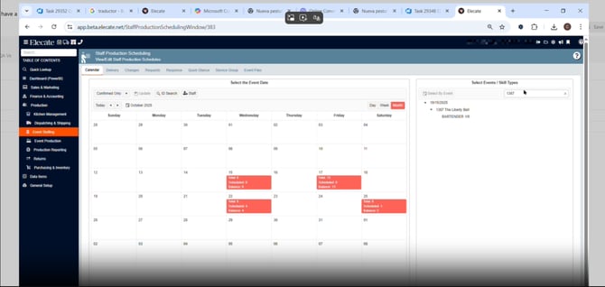 - On the "Staff Production Scheduling", within the "Select Events/Skill Types" section, we need to have a "Search Bar" next to the right of the "Select By Event" button