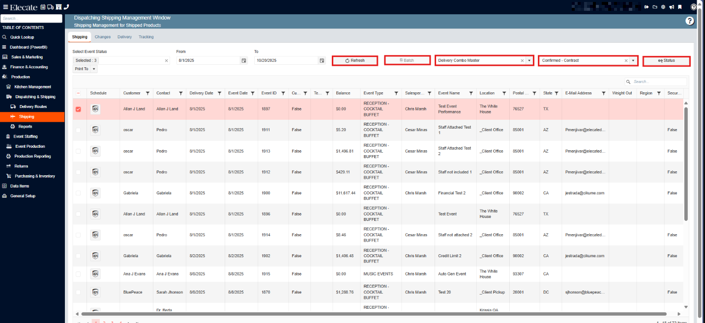 - On the Dispatching Shipping Management Window.
