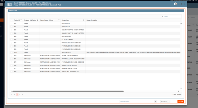 - On the "Recipe Cards by Event" window, it must show only events that has recipes on it.
