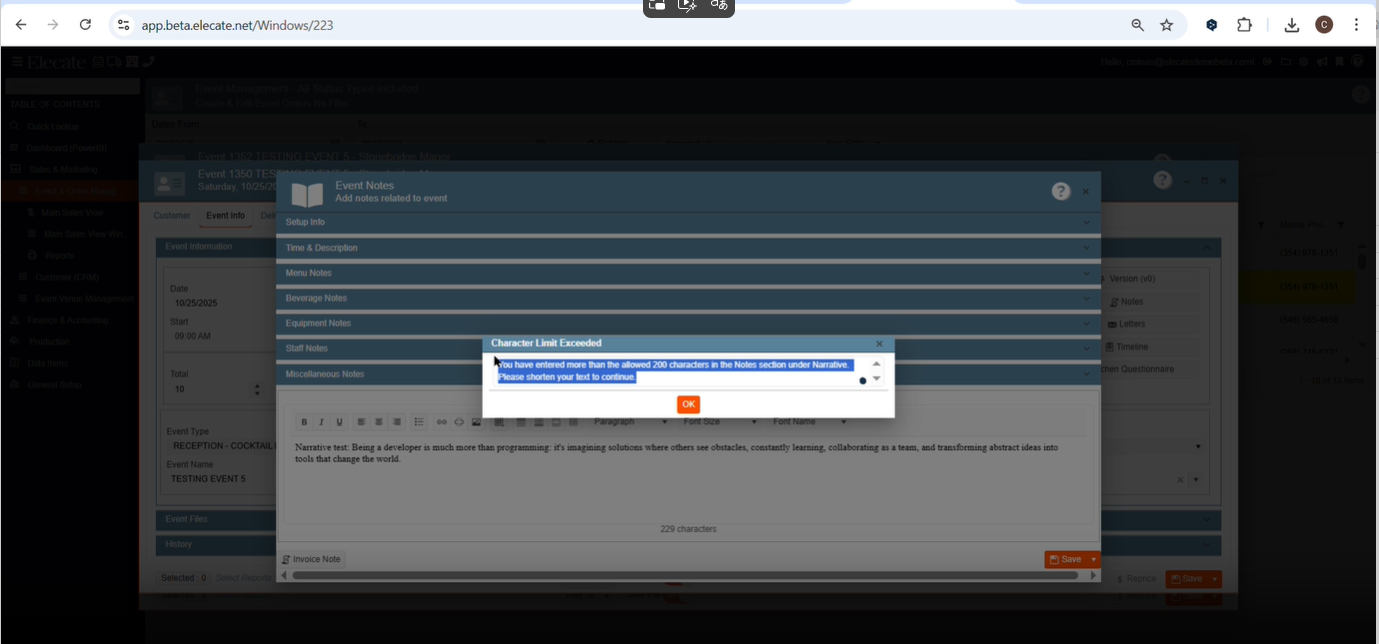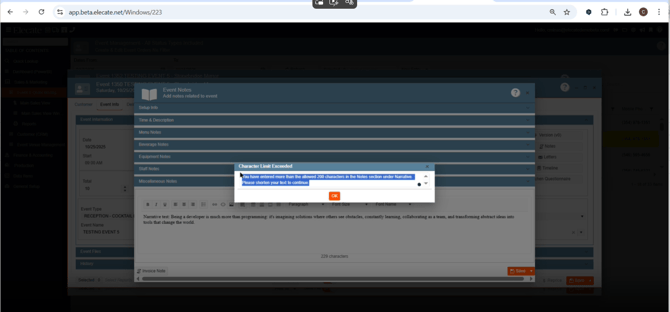 - If a user exceeds the character limit for the Narrative, we need to change the current message to this: