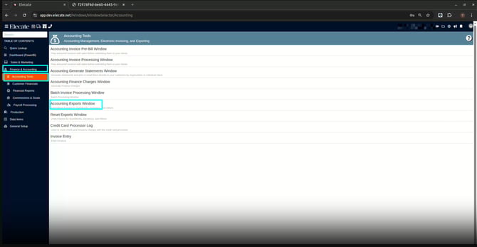 3. Select Accounting Exports Window
