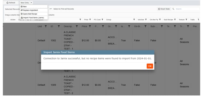 2. Syncronizing Jamix Stock Cards into Recipe Items, so that I can Manage Jamix POs: