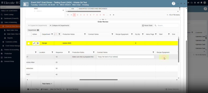 - If a user does a change on the "Production Notes, Contract Notes, Sequence or Eqp Quantity" then those changes must be saved only if the user clicks on the "Save" button for the event.