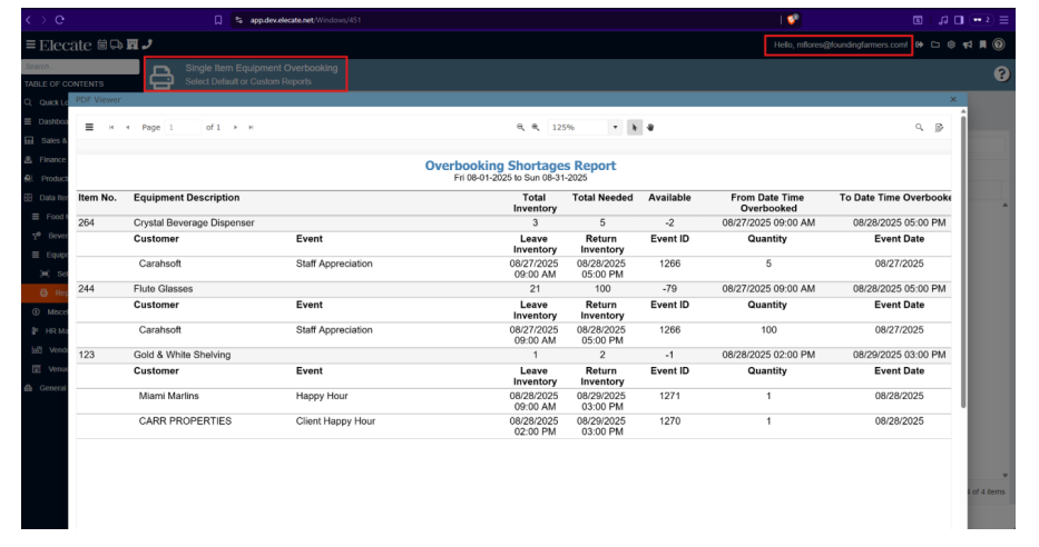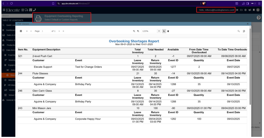 - Equipment Overbooking Reporting