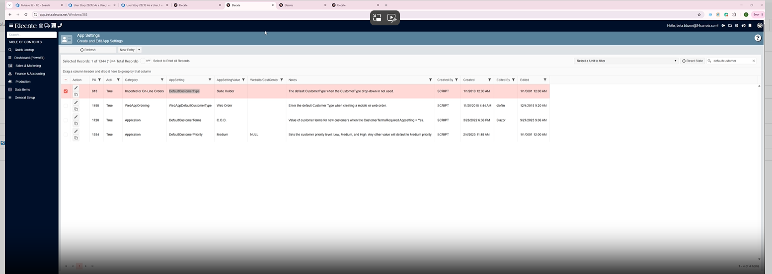 8. Wanting that prospects become customers, to have the value for the "DefaultCustomerTerms" appSetting in it: