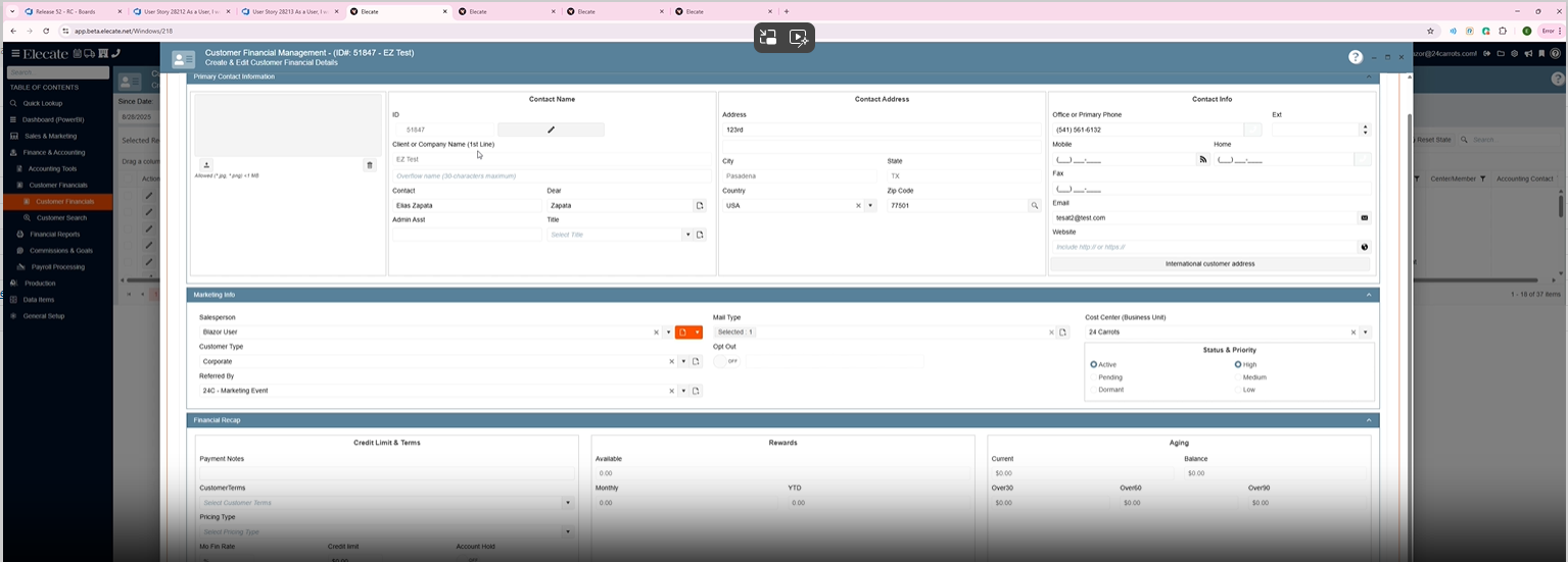 8. Open an existing customer by clicking on the pen Icon