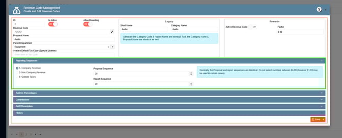 Outside Taxes: The option of deciding where you would want the category revenue included on certain specific financial pages of the proposal. It can be included as part of Company Revenue, Other Revenue, or after a Grand Total has been calculated.