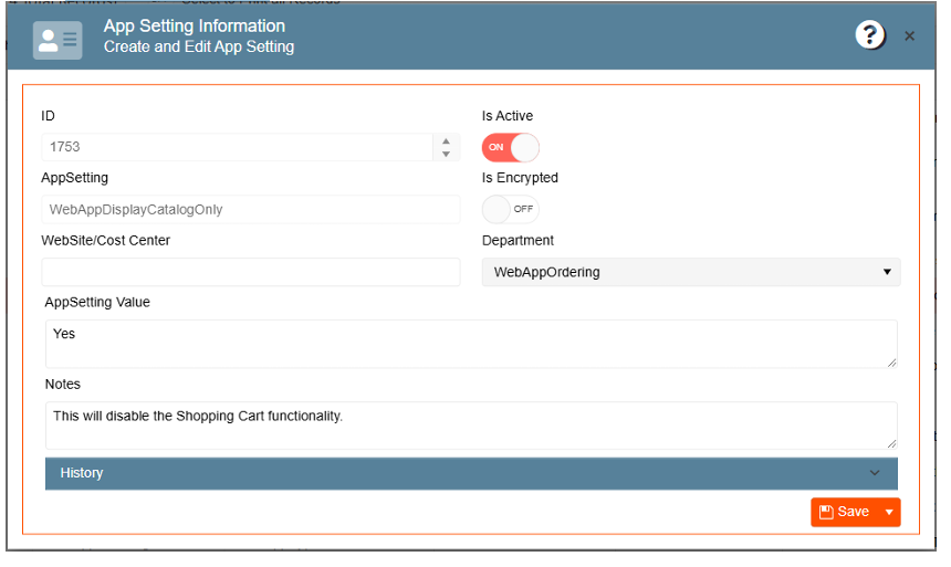 Search for the “WebAppDisplayCatalogOnly” app setting