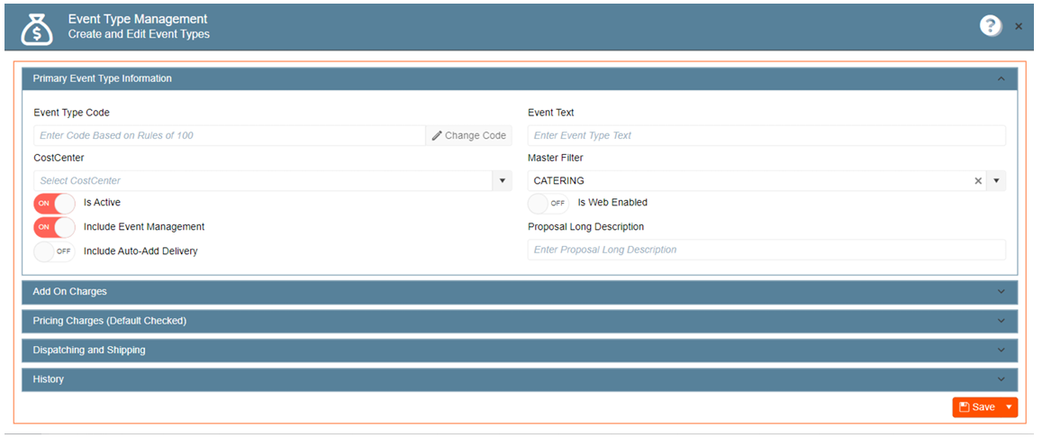 5. Enter the Event Type Code