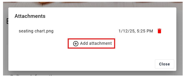 Attachments can be uploaded from the shopping cart so they show on the Event Files, facilitating the communication between the customer and sales person: