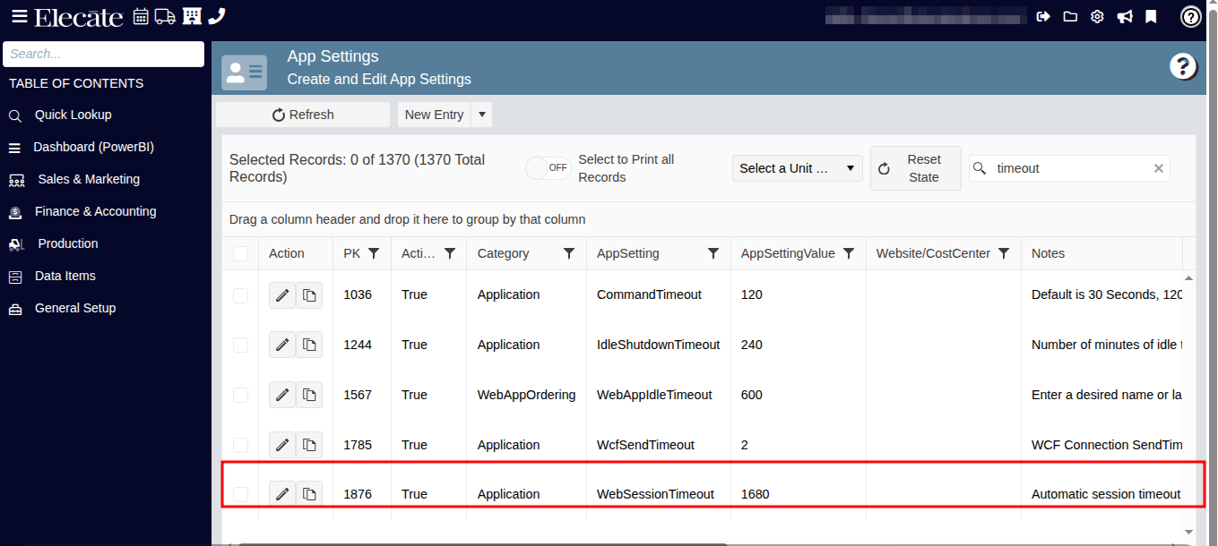WebSession Timeout How to set up the time out session:At the top of the screen click on the Gear Icon: Select AppSettings: Look for the following appsetting and make sure we have the following value: 1680