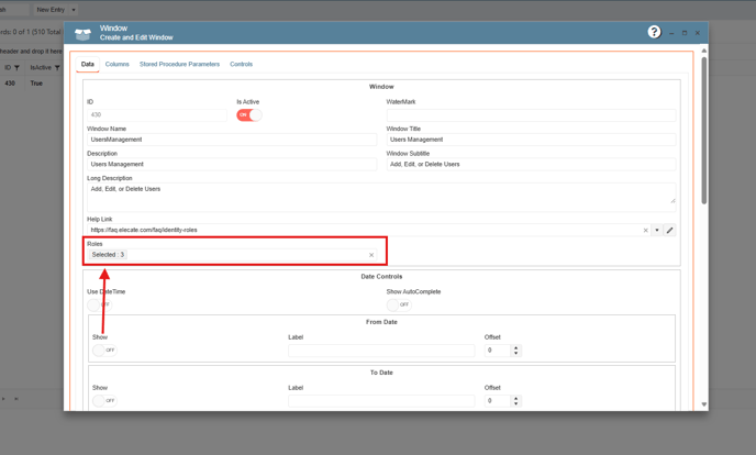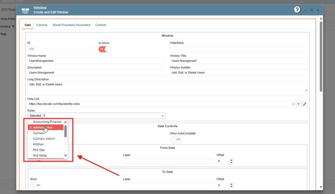 5. A drop-down menu will appear. From this menu, select the roles you want to grant access to the desired window