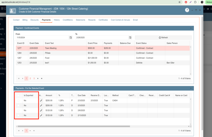 The billing IsExported column has been added to the Payments grid in OrderDetails, CustomerFinancial, when the Flag is checked that row should be marked as ReadOnly.