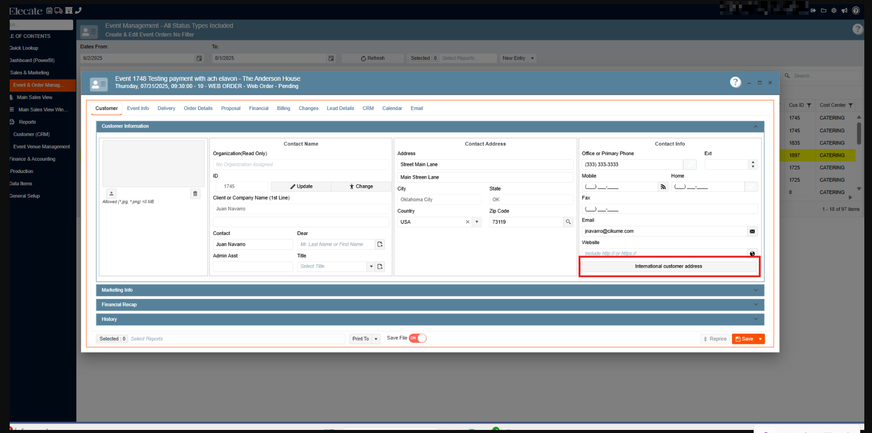 5. On the Customer tab, go to the Contact Info section on the right side, in here you will find the International Customer Address.