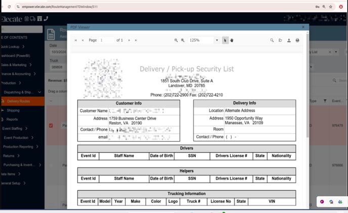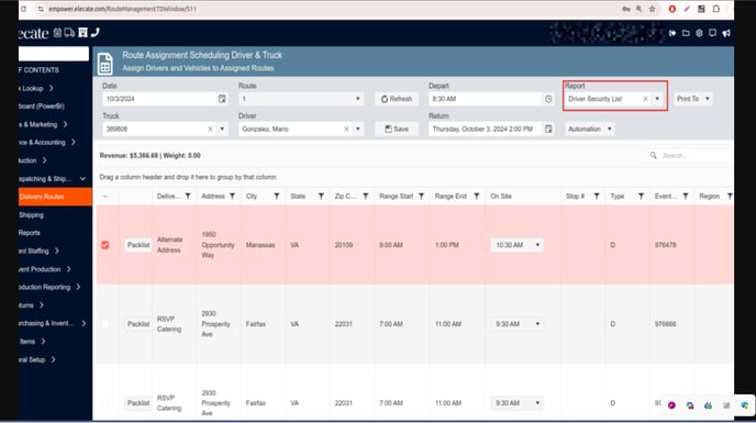 The Driver Security List report is loaded in the Route Assignment Scheduling Driver and Truck screen for all databases.