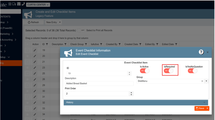 7. Click the Edit Item Print Option button, it will open the Event Item Print screen where the new toggles should be added