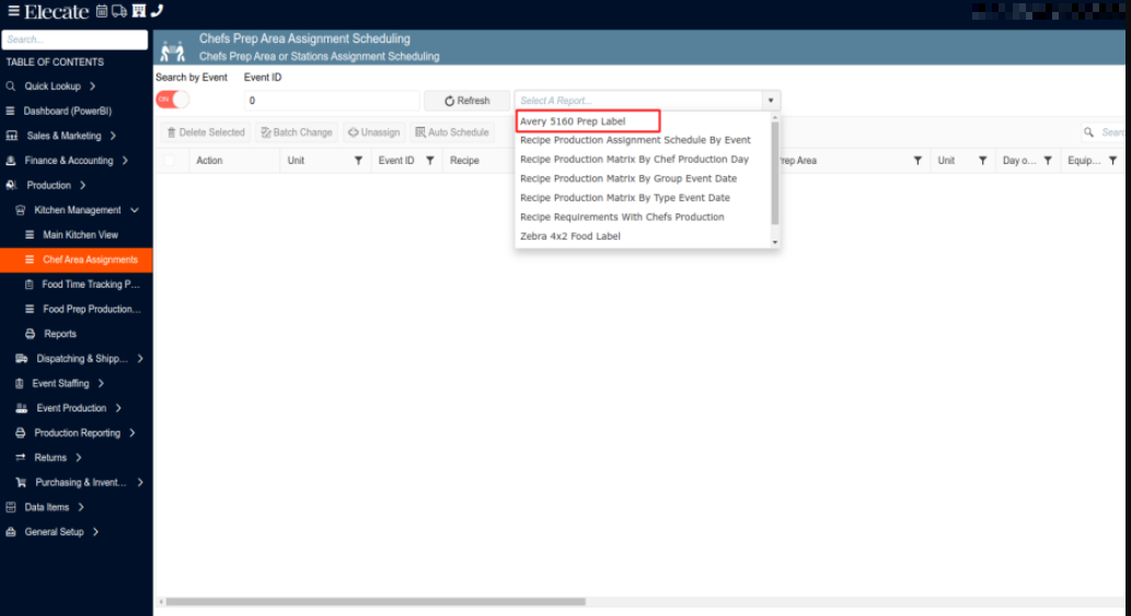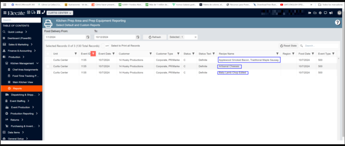 4. Choose Kitchen Prep Area and Prep Equipment Reporting