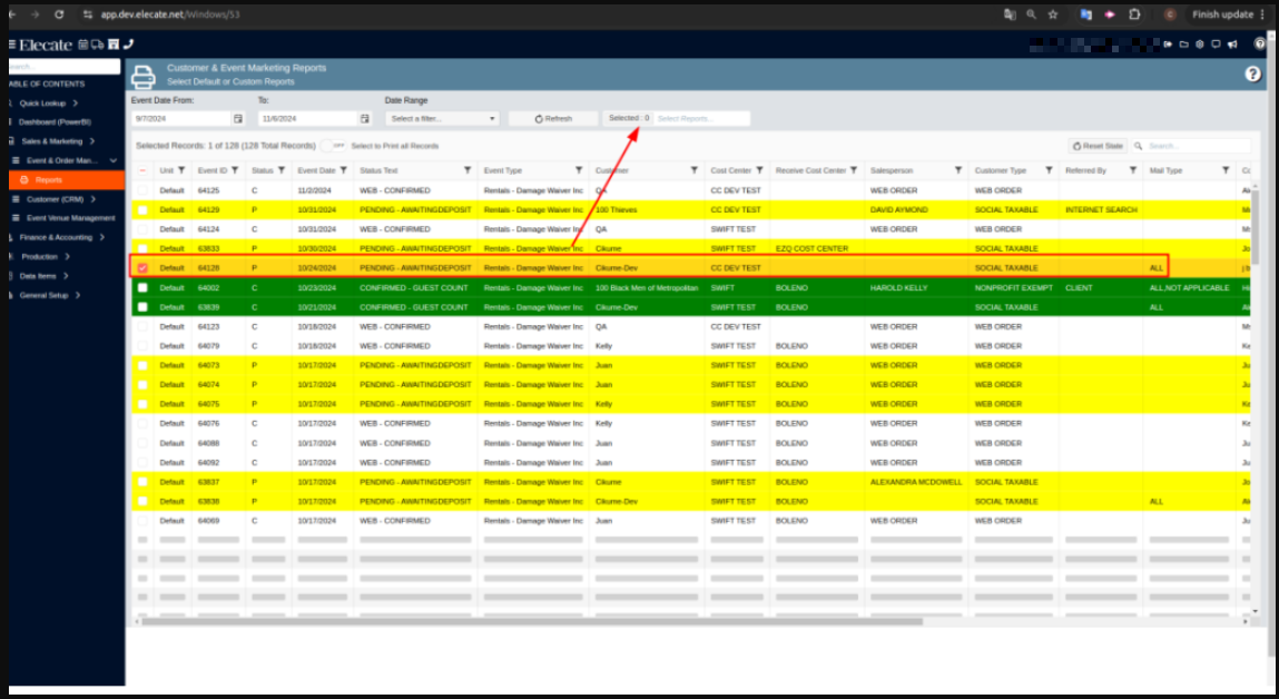 Reports are displaying the information correctly; the system is pulling the event´s information in the corresponding columns.
