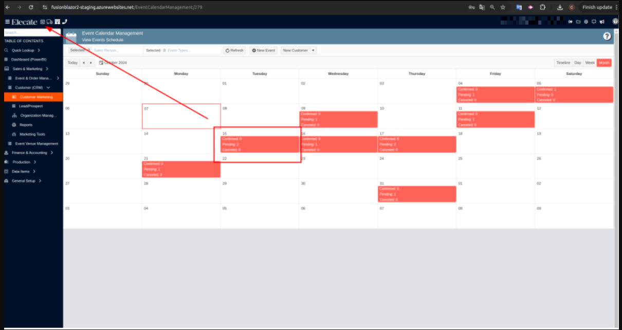 1. At the top of the screen, you will find a calendar Icon (Event Calendar)