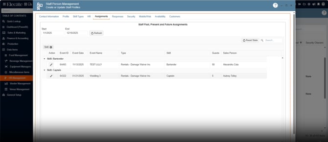 2. Having Grid Persistence on the "Assignment" staffing window: