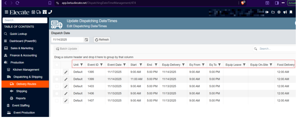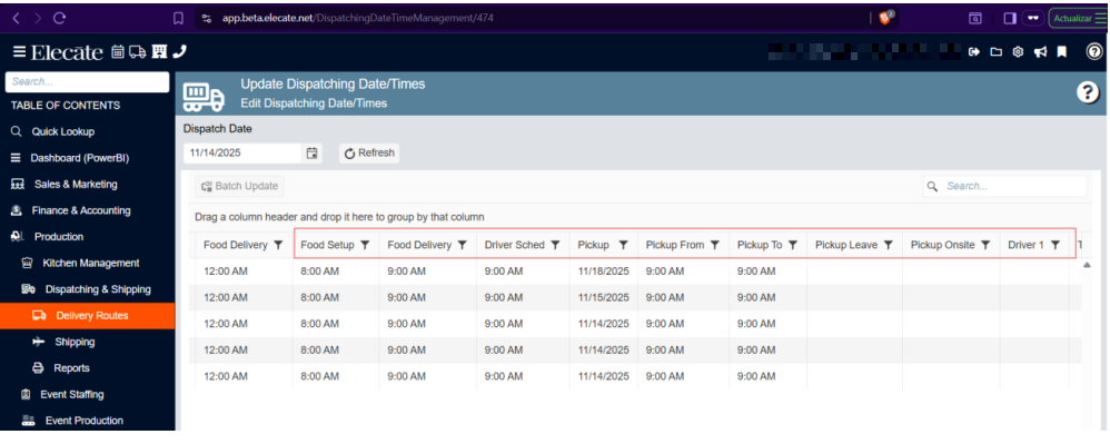 4. Choose Update Dispatching Date/Times