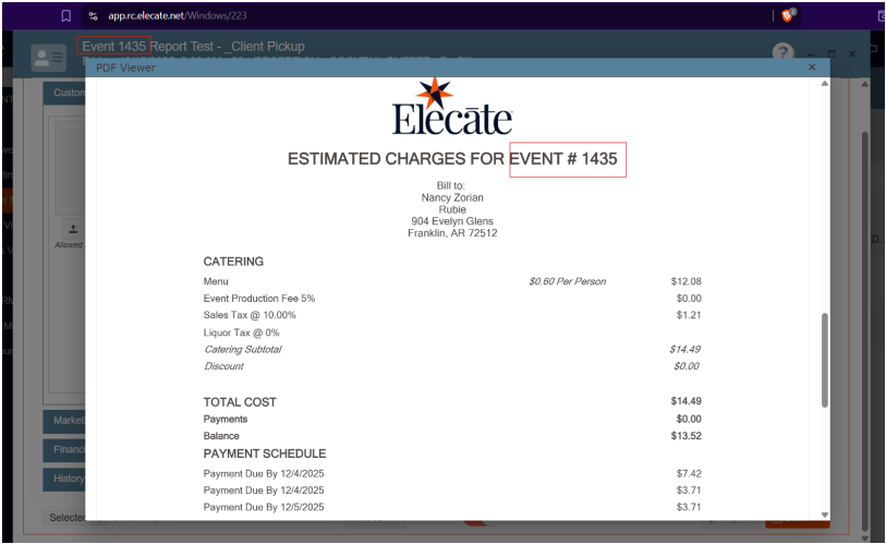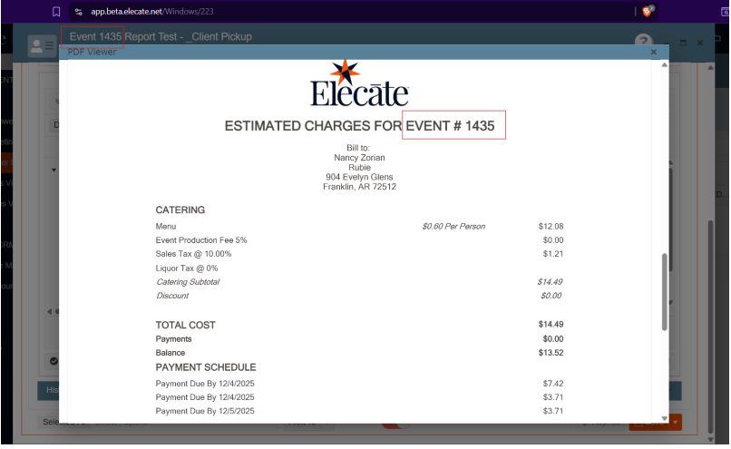 event.name,event.event_date_full,event.offsite_address,contact.first_name, etc.) populate correctly. - Email template matches provided UI/UX approach from TripleSeat.