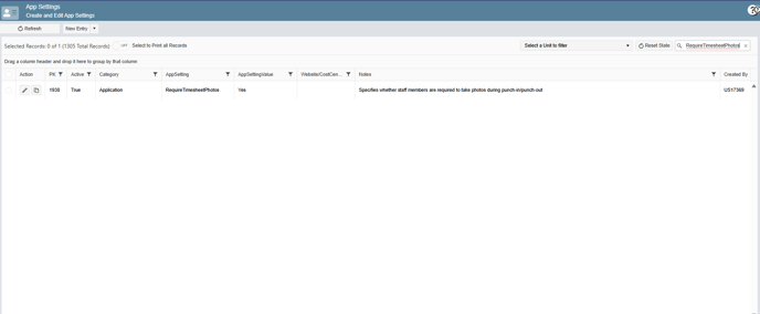 3. Look for the Appsetting ¨RequireTimesheetPhotos¨