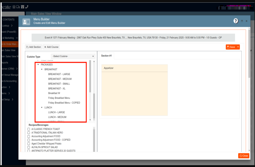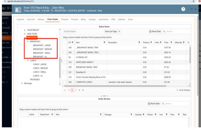 It was added to the Menu Package section into the Order Details (Events) & Menu Builder, a Tree Package Group View.