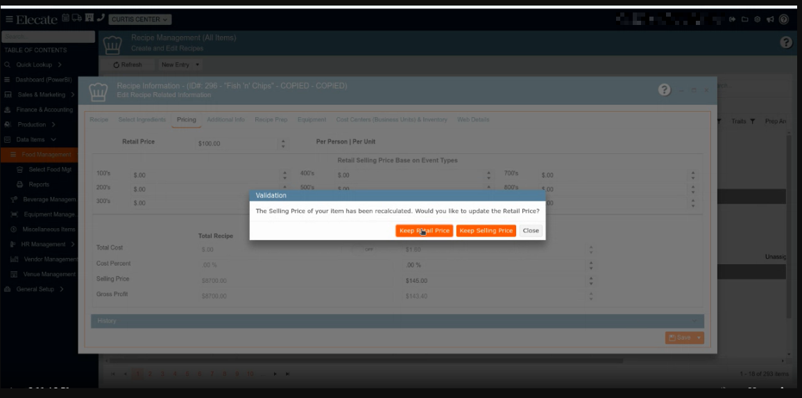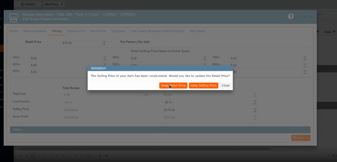 6. Getting a pop up when the retail price doesn't match the selling price: