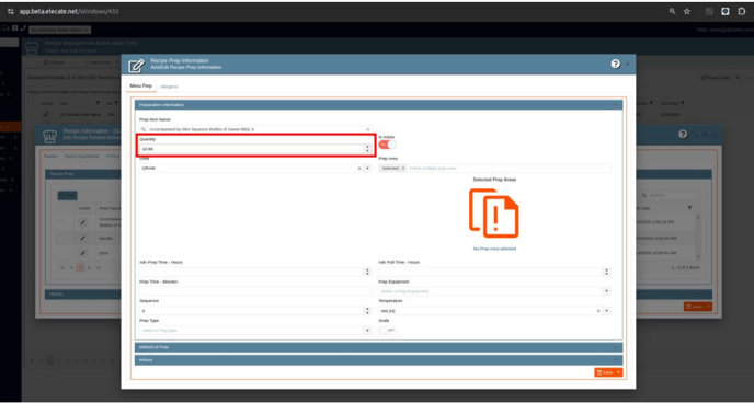 8. Allowing decimals in the Recipe Prep section for the Quantity field:
