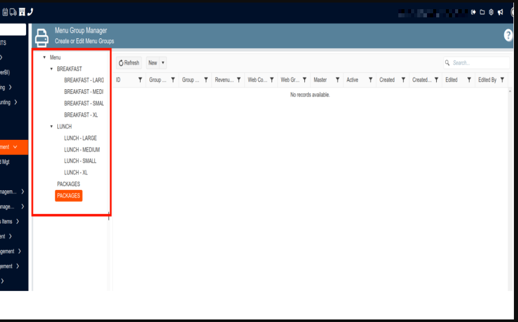 4. Having the Menu Groups within the Packages Tree View Node in the Event Order Details and Menu Builder components: