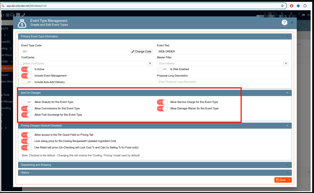 10. Converting the "Save" top button in the "Event Sales Menu" window to a full save:
