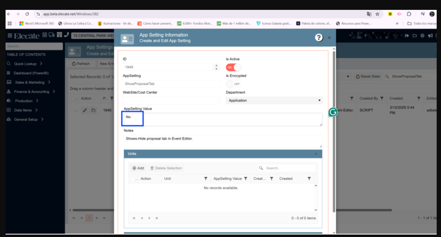 An app setting has been created to enable or disable the proposal tab and its functionality.
