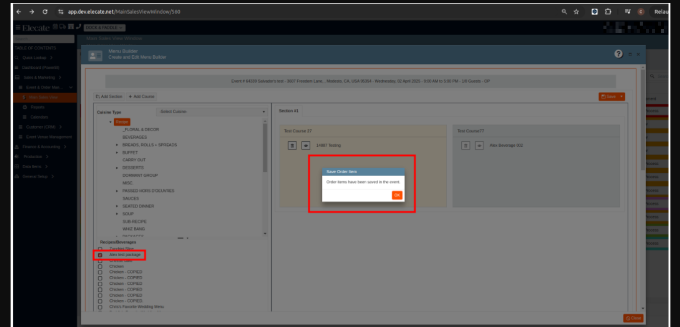 Reduce waiting time after multiple items are added to different sections in the Menu builder for a more seamless user experience and reduce waiting time after hitting save and close on an event, following the addition of items in the Menu builder, to enhance user experience.