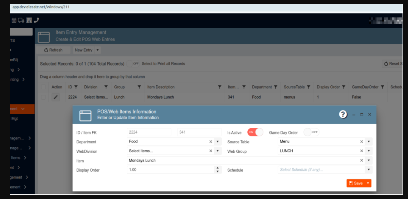 5. Working on the webitems (POS Web Item) from source table: Menu: