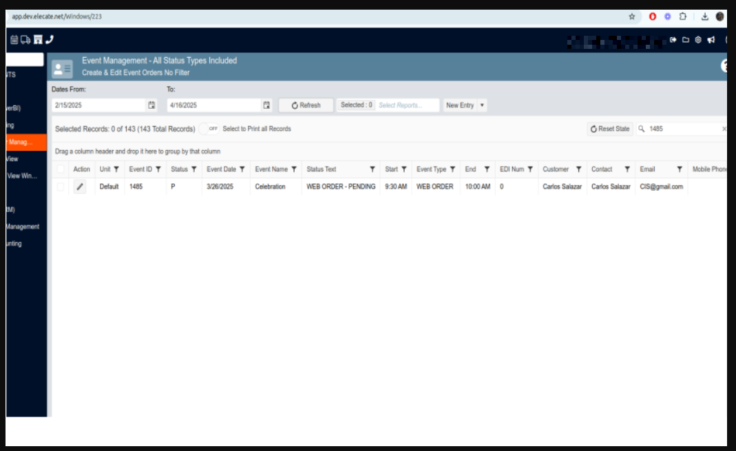 6. Select Event & Order Management