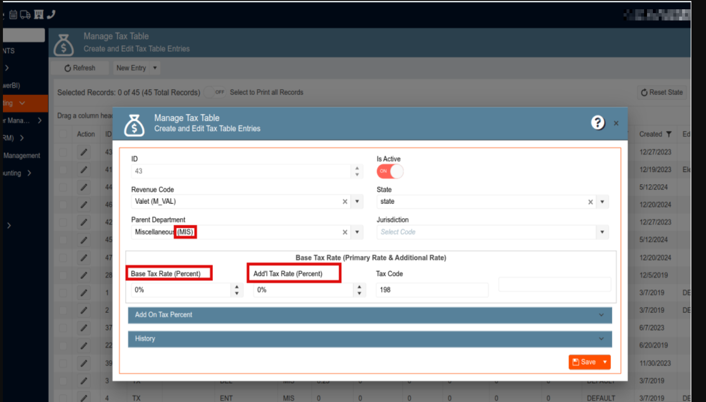 - Change "Tax Percent" to "Base Tax Rate (Percent)".