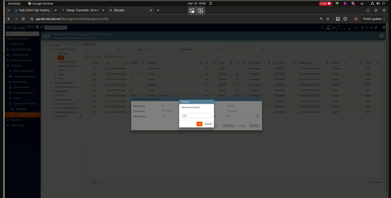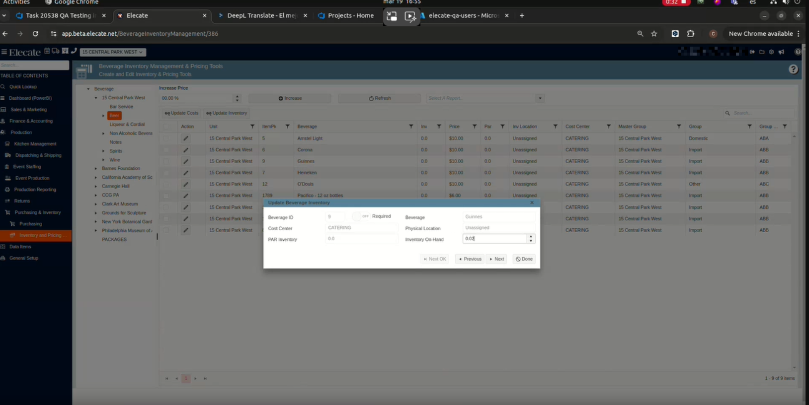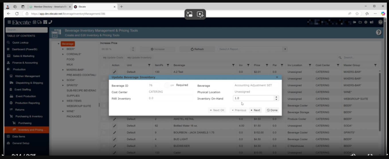 The Enter Key Function pulls the "Next" button action when the user is modifying the Inventory on Hand.