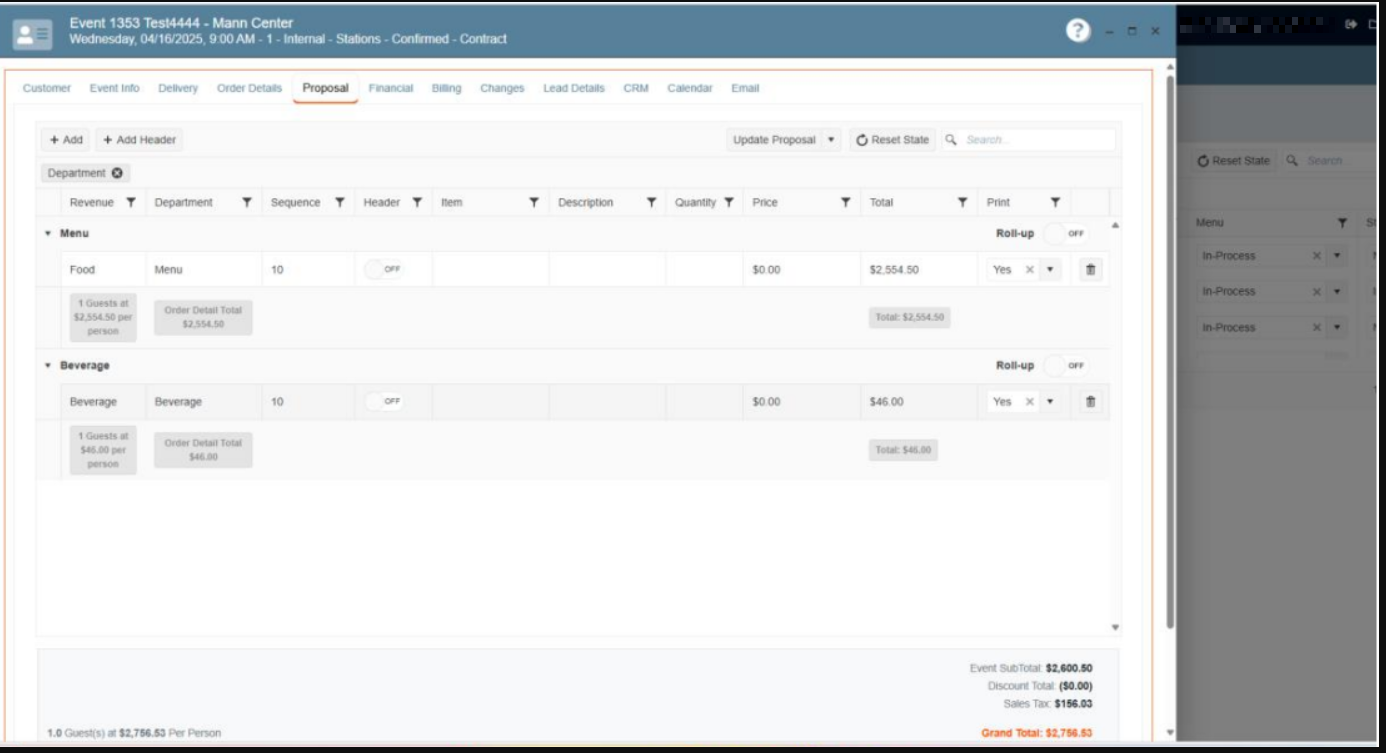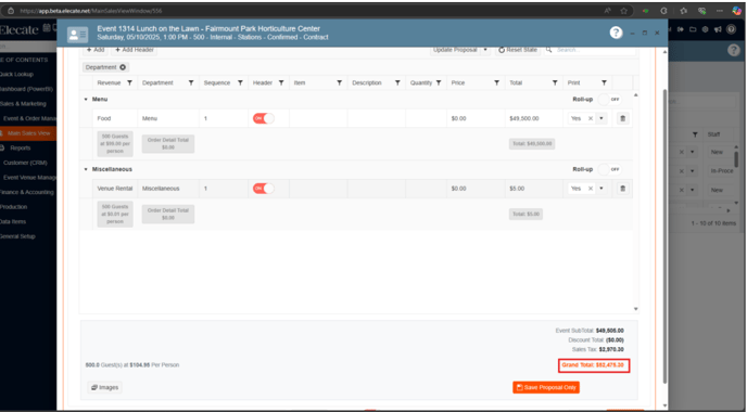 The user will be able to add items through the Menu Builder and these items will be visible on the Proposal Tab.