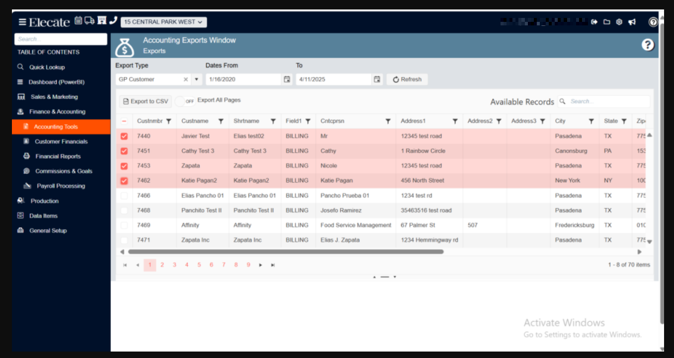 IsExported = 1. - Verify that the status of unselected customers remains unchanged.