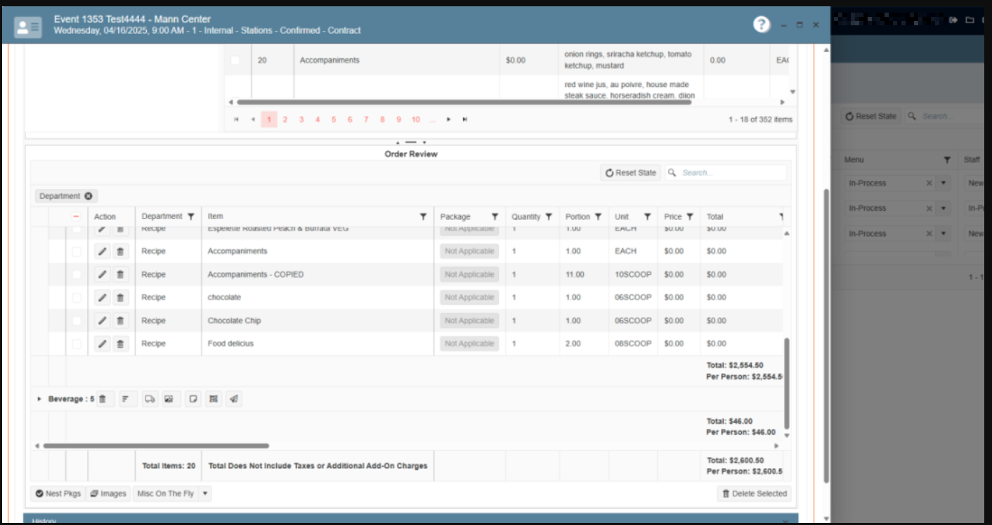 4. Open an existing event, add items to the event by selecting the Misc On The Fly button
