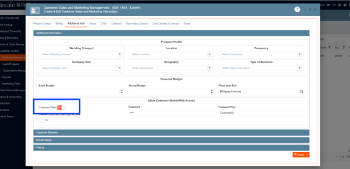 7. Then go to the Additional Info tab and make sure the Customer Web toggle is ON.