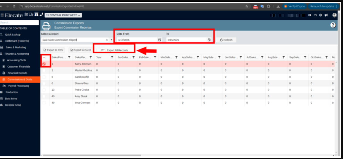 6. Click on Main Sales View and click on the Menu Builder Icon