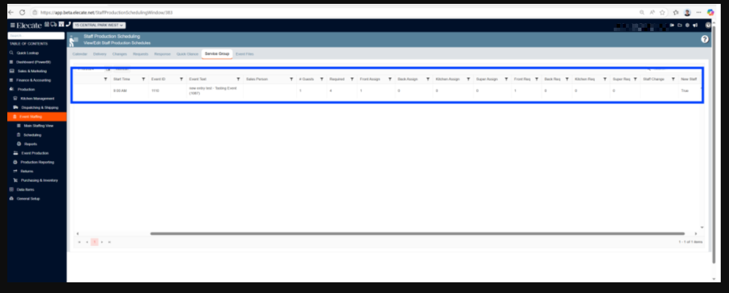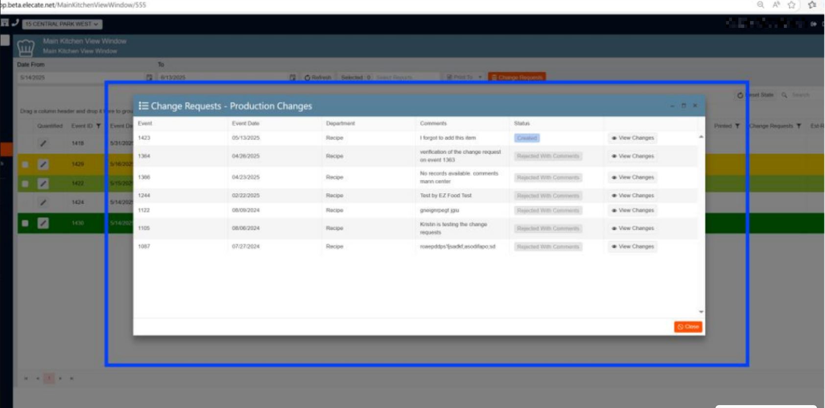 3. Select Main Kitchen View, as soon as you click on here the Change Request window will display.