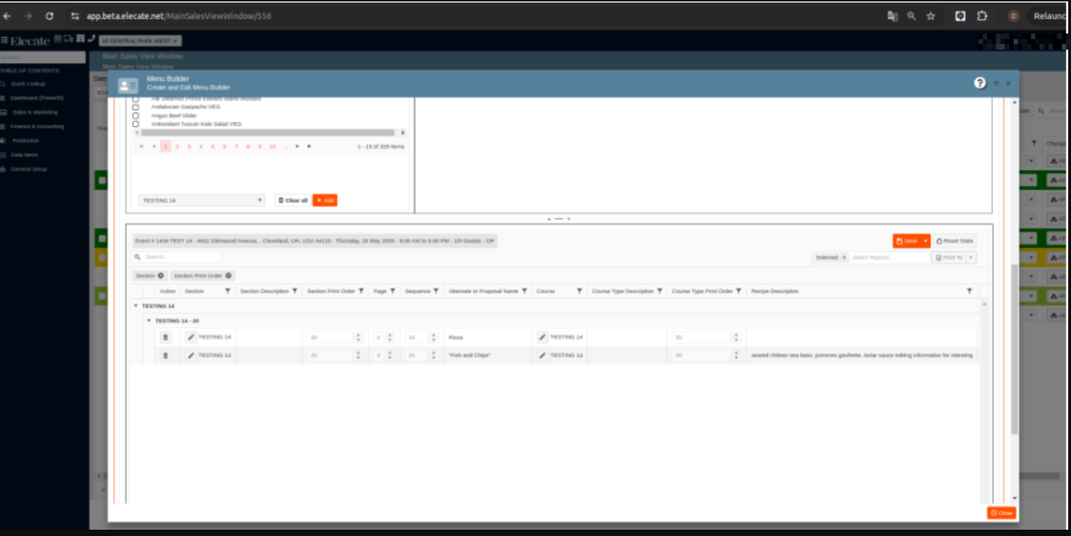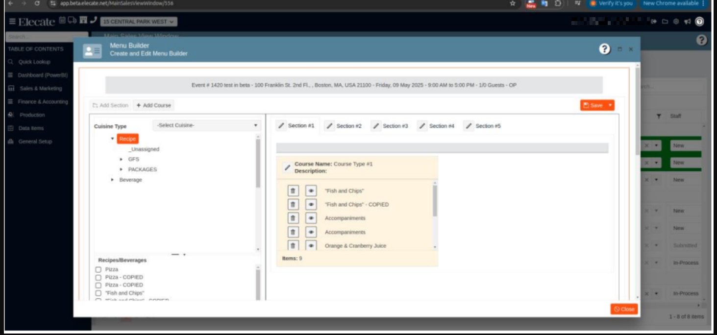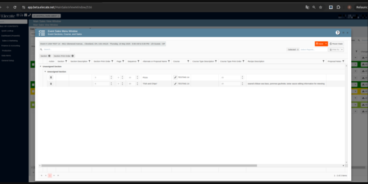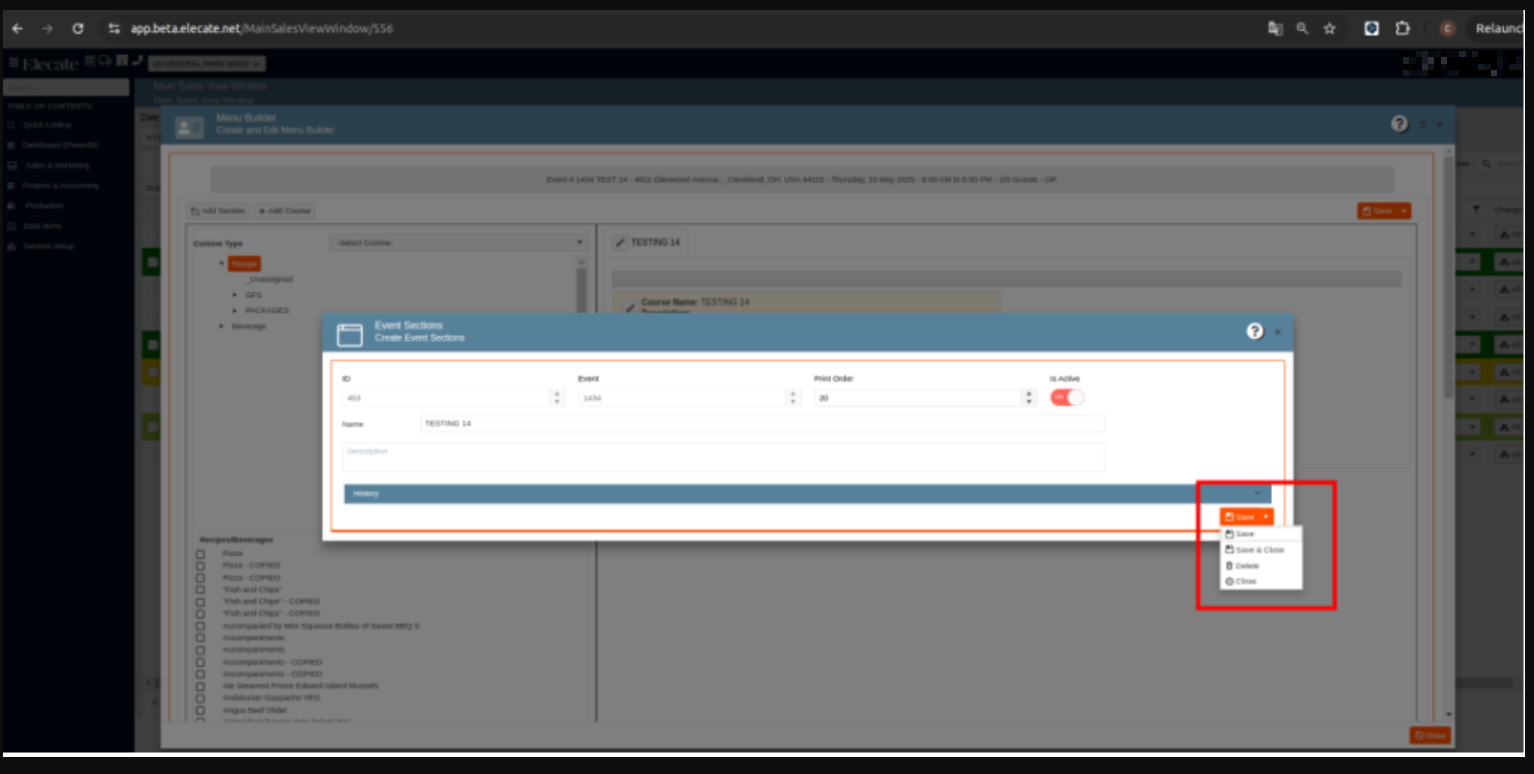 7. Needing the ability to delete Section & Courses from the Menu Builder or Event Sales Menu at the event level: