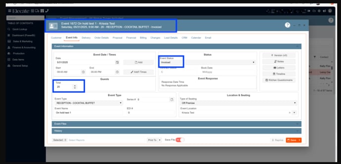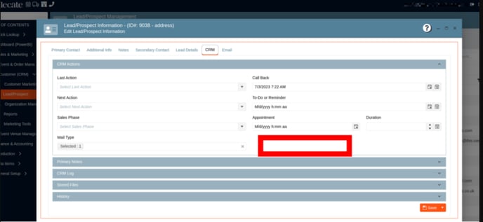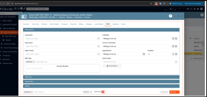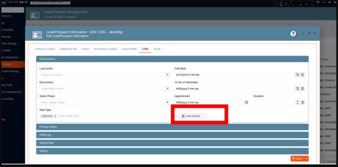 2. Seeing the Last Actions modal window in the Prospect and Event Sections: