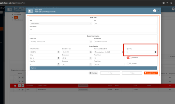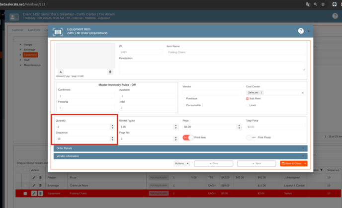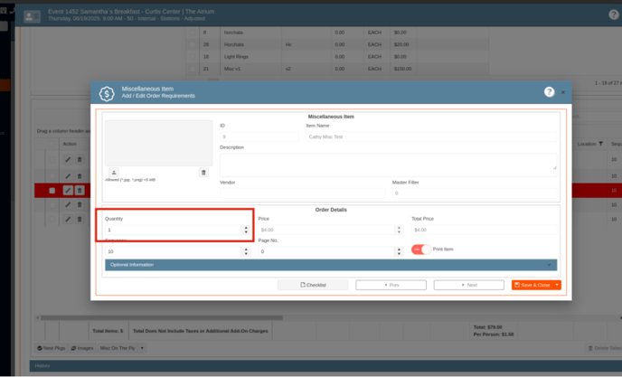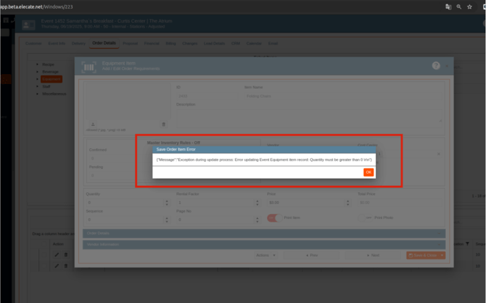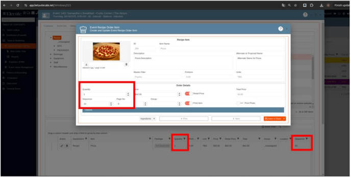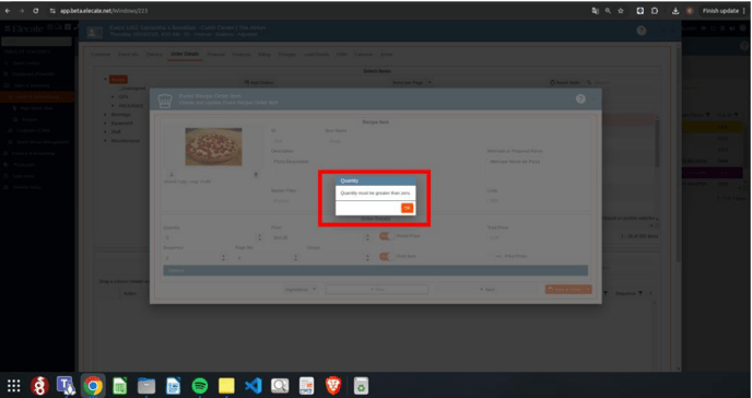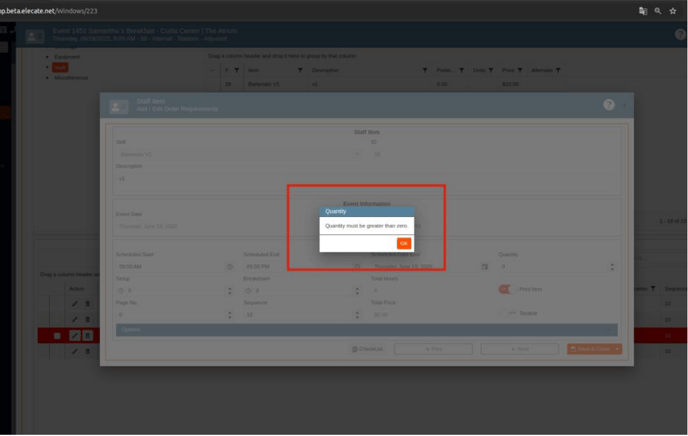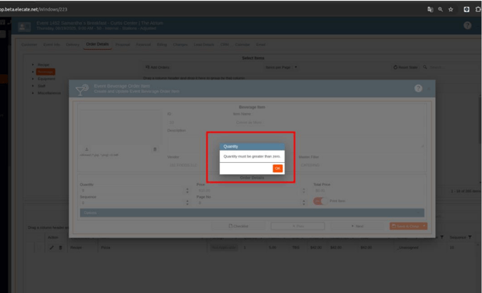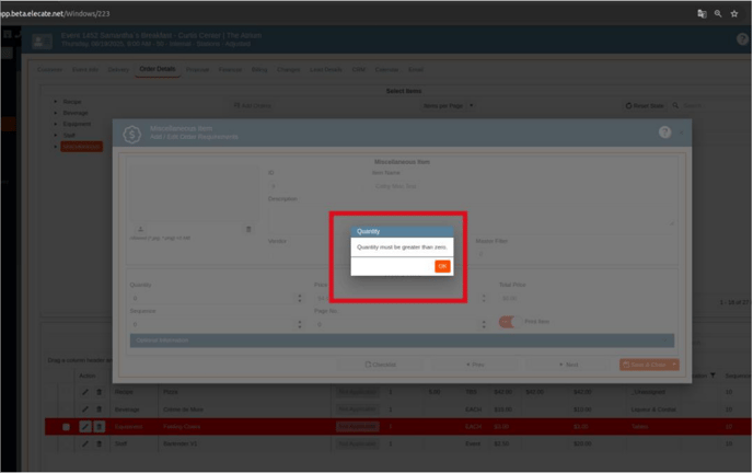 1. Adding validations to prevent: "Quantity must be greater than 0" and "sequence is required" Errorlog | EventFoodItem Update ex: