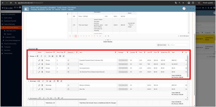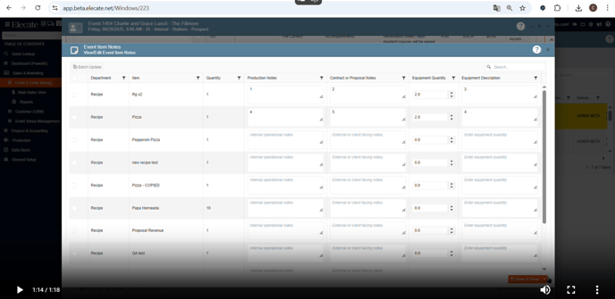 4. Split the items by departments, so you will be able to see the Edit Item Notes option