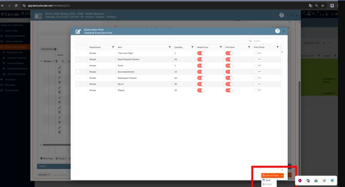 9. Wanting the "Save" button on the "Event Item Print" to be in accordance with our standard: