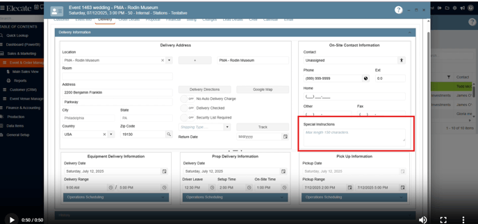 9. Go to the Delivery Tab, on the right side of the window, go to the Special Instructions section